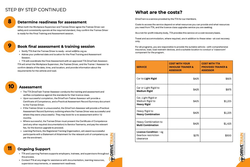 Devised in direct response to TTA member demand, DriveTrain has been established with the support of the Tasmanian Government and is designed to deliver practical, high-quality heavy vehicle driver licence training for the transport industry, by the transport industry, using experienced driver trainers employed within TTA member businesses.